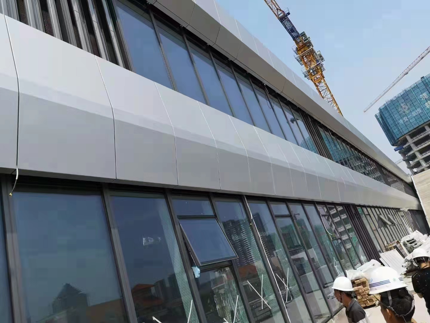 在安裝過程中抗外力性能超群。表面涂層采用氟碳噴涂涂料,保證表面色澤均勻,抗紫外線輻射,抗氧化,超強(qiáng)耐腐蝕,鋁單板安裝應(yīng)按板塊分配圖上板號安置就位,明膠縫部位安裝角碼組裝好,并檢查相鄰兩塊板角碼是否錯(cuò)開,試裝檢查其水平度、垂直度,然后用不銹鋼螺栓裝配,試固定在主副龍骨上,調(diào)整橫豎縫間隙符合要求再固定。